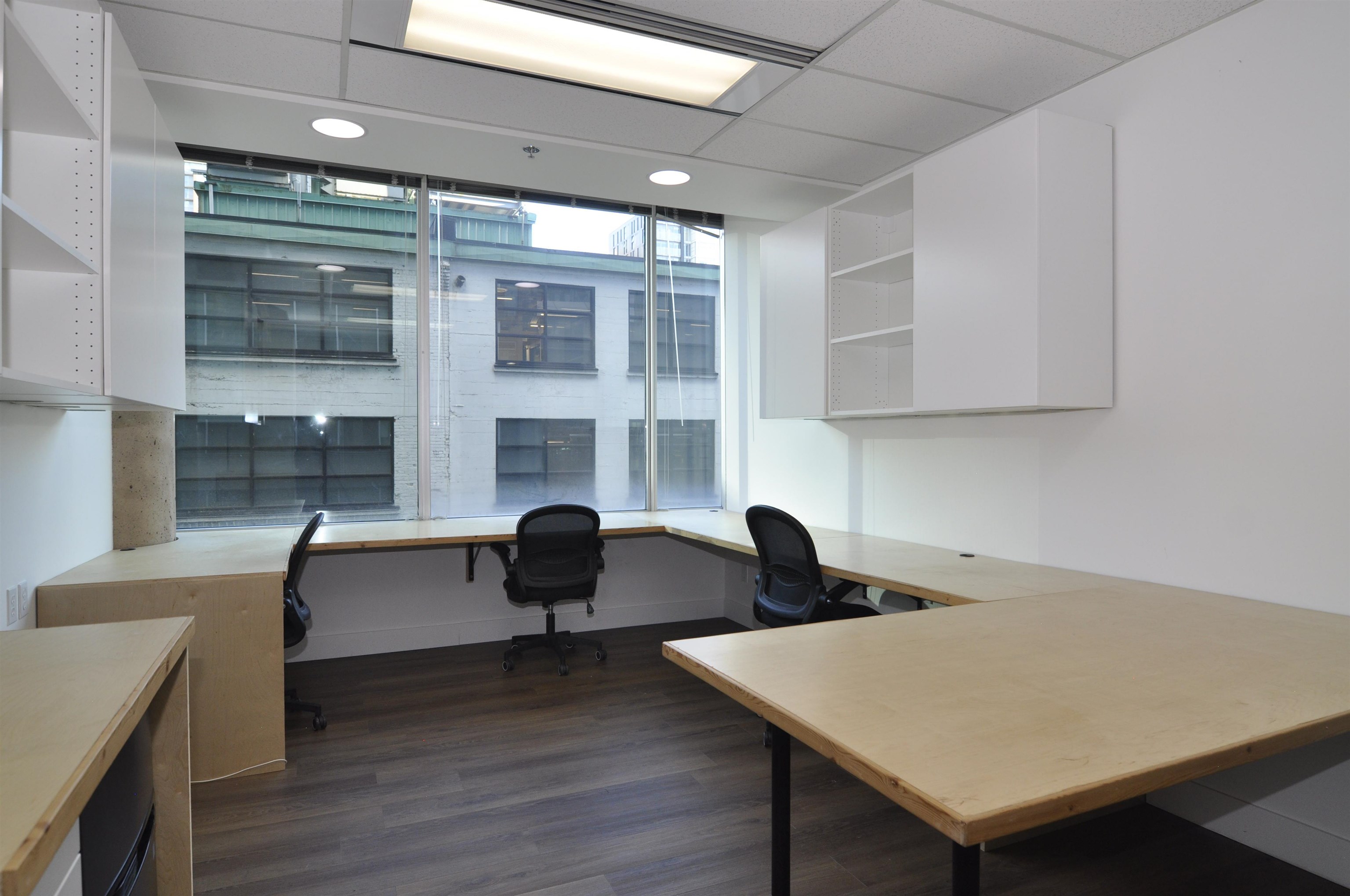 Improved with abundant millwork, unit 405 maximizes efficiency of its 230 SF with built in wall cabinetry, and desktop work stations. The wraparound work station is ideal for multi tasking, or multiple individual users. The table facing window takes in skyline views of downtown on either side of an urban scene to a retrofitted turn of the century office building. A shared kitchenette on the 4th floor is 5 steps away, with the buildings main shared board room on the 4th floor. 3 more conference rooms are situated on different levels of the building. Pacific Place, in its west coast inspired design, features a structural glass clad front exterior lobby with overheight ceilings and concierge service. Ideally located in the amenity rich area of central downtown, a block away from Pacific Centre, Robson Sq, and Granville St. With a strong sales track record at 938 Howe St, unit 405 is ideal for investment by owner users or investors seeking added rental income with a turnkey office improvement.